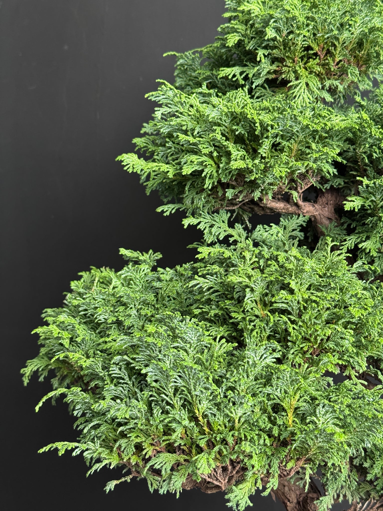 津山檜源自日本,葉片細小如鱗,雲片般疊翠,姿態古雅秀逸,極具價值。由於生長十分緩慢,稀有度極高,因此在盆景界備受珍視。日本檜(ヒノキ)在日本亦被稱為「靈之樹」、「日之木」,分佈於本州中部以南至九州地區。