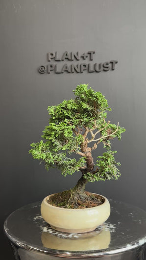 津山檜源自日本,葉片細小如鱗,雲片般疊翠,姿態古雅秀逸,極具價值。由於生長十分緩慢,稀有度極高,因此在盆景界備受珍視。日本檜(ヒノキ)在日本亦被稱為「靈之樹」、「日之木」,分佈於本州中部以南至九州地區。
