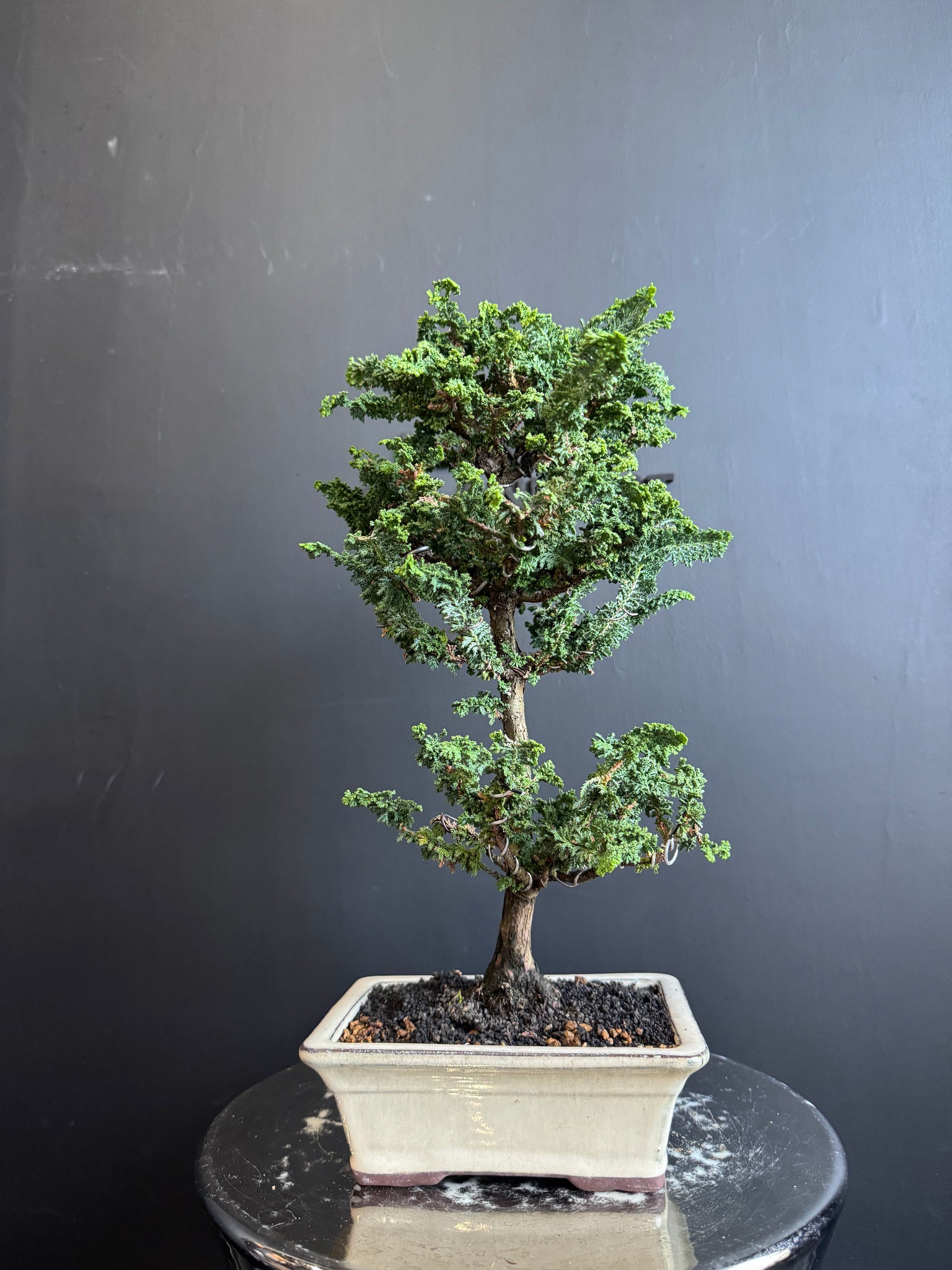 作為檜樹中變異出的珍稀品種,養護一盆石化檜,不僅能欣賞其細膩優雅的姿態,也能在生活中創造出一種自然流動、和諧靜謐的氛圍。